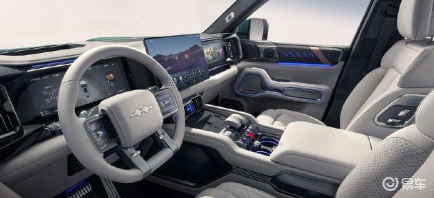 豹8采用四屏联动设计,12.3英寸全液晶仪表、17.3英寸中控屏、12.3英寸副驾屏与AR-HUD形成立体信息矩阵,搭载DiLink车机系统,配合HUAWEI HiCar、四区域语音控制、DeepSeek AI大模型实现高效交互。此外,豹8全系搭载18扬声器帝瓦雷音响与双开门高压冰箱,配置更丰富。