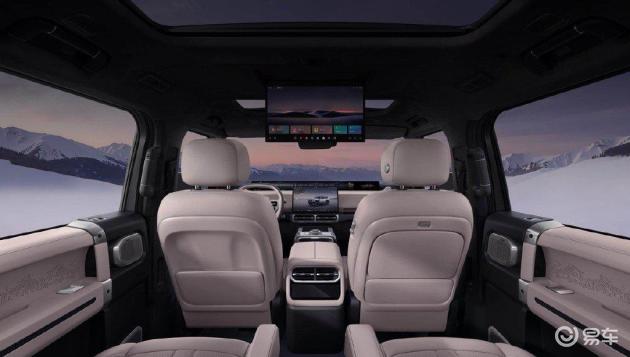 内饰部分,两款车均以“豪华+智能”为核心,但呈现形式各具特色。G700搭载了35.4英寸贯穿式远端天际屏,替换传统的仪表屏,搭配15.6英寸悬浮中控屏,科技感扑面而来。车机采用纵横OS系统,支持四音区语音控制、HUAWEIHiCar,满足智能交互需求。此外,中高配车型还提供17.3英寸后排娱乐吸顶屏、8.8英寸后排控制屏与车载冰箱,提升了娱乐与舒适体验。