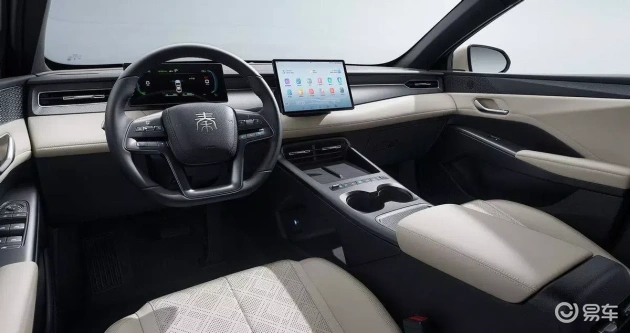 秦PLUS的内饰设计注重实用性,中控台采用大面积软性材质包裹,最大12.8英寸中控大屏搭载DiLink系统,支持双区智能语音交互、车联网、手机控车等功能,但未提供手机互联。秦PLUS全系配备地图导航、定速巡航等功能,部分车型搭载L2级驾驶辅助系统,具备高速领航、智能泊车辅助等高阶功能,智能化程度较高。