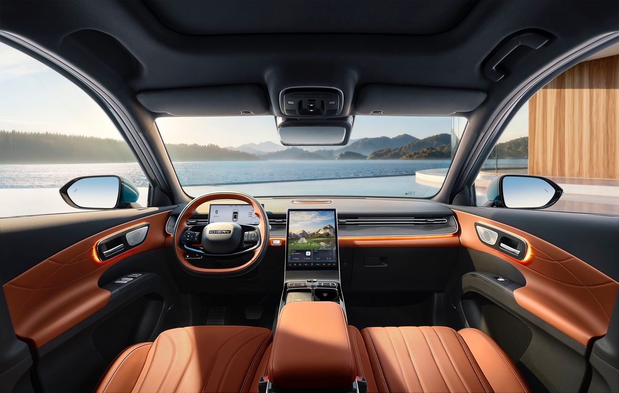 配置方面,标配了车规级8155芯片,能支持在零下40度和零上85度的环境下工作。除此之外,还标配方向盘四向可调、皮质座椅、540度全景倒车影像、无钥匙进入、一键启动、蓝牙钥匙、第二排空调出风口等配置。