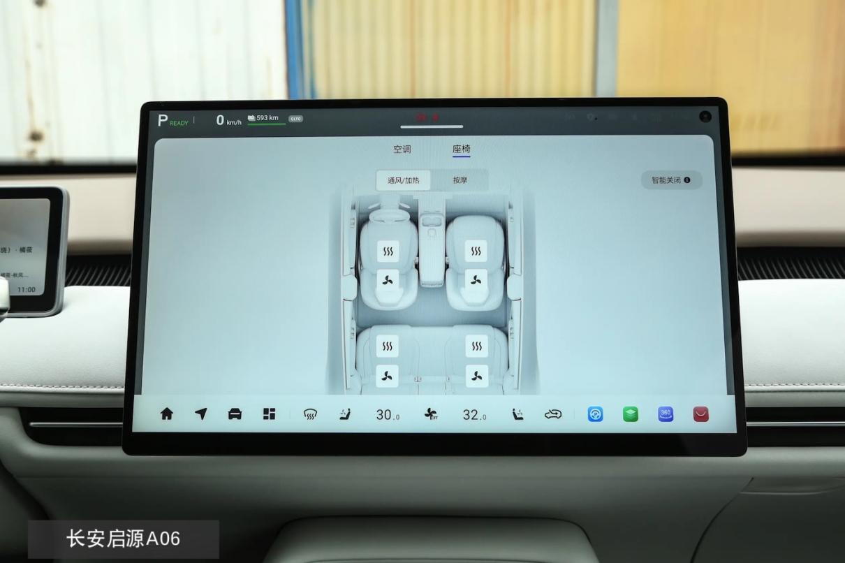 长安启源A06在这方面则要更周到一些,它的加热/通风/按摩直接覆盖了前后座,坐后排的老人小孩也能照顾到,而且舱内还有一套智能冷暖箱,要是想喝热拿铁、给孩子准备点儿热食什么的,它都可以做到。