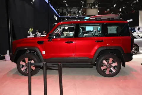 首先来看呼声最高的增程赤兔标准版。新车整体外观设计延续现款在售车型的整体设计风格,依旧保持经典的方盒子造型,经典的家族式五幅格栅周围搭配环形行车灯,辨识度与科技感表现十分到位;同时依旧采用无边框式车门设计,车尾依旧采用外挂式备胎布局,兼顾了越野车硬派既视感同时也不失如今大家需求的科技感。