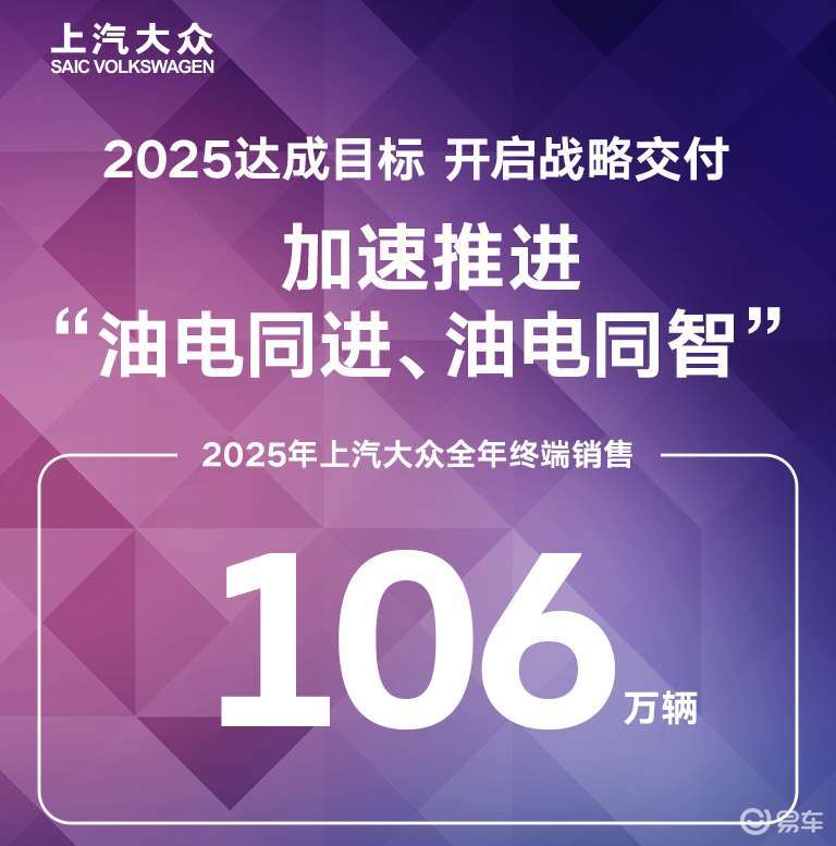 正是得益于燃油车性能与智能化的快速迭代升级,以及新能源车型的逐步落地,2025年上汽大众累计销量106万辆,其中大众品牌销售超过100万辆。在新能源车渗透率突破50%、自身新能源车型尚未大规模落地的背景下,上汽大众依然保持100万辆以上的水平,既是积极应对市场变化、加速新能源快速转型的成果,也凸显其强大的号召力。值得一提的是,2025年上汽大众燃油车市占率提高到8.3%,非常出色的成绩,进一步印证了其油电同进、油电同智战略的科学性与可行性。