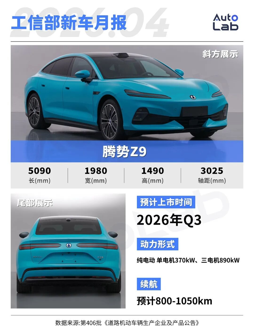 2026款腾势Z9 GT刚在3月完成上市,轿车版Z9也紧接着出现在工信部目录中。